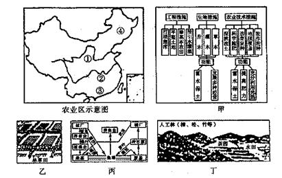 22.甲、乙、丙、丁四种生态农业模式图与农业区序号对应连线,正确的是 ( )