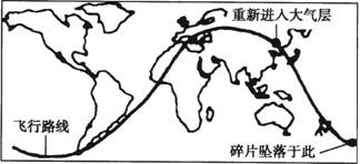 2001年3月23日,和平号空间站走完了15年的坎坷历程,带着前苏联时代的骄傲和世界人民的惋惜从地球轨道上消失了。根据该空间站坠落路线(如图1-3)完成14-16题。