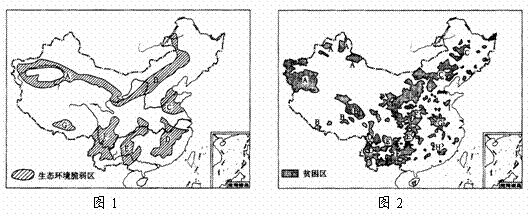 24.图1是“中国生态环境脆弱区图”,图2是“中国贫困区图”,回答下列问题: