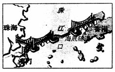 2009年12月15日,港珠澳大桥正式动工。港珠澳大桥采用桥隧结合方式,大桥主体工程长29.6公里,建成后,将成为世界最长的跨海大桥。届时由香港开车到珠海或澳门,只需要15-20分钟,而目前行船需1个小时。读大桥设计图,回答4-5题。