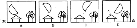 3.下列四图中,与农历二十二、二十三日出前所见月相及其位置相符的是( )