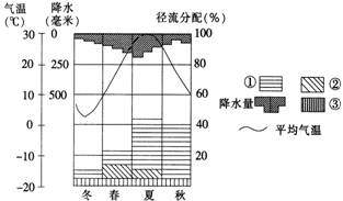 4.下图表示重庆附近长江某水文站的气温、降水状况及该江段补给类型,读后回答