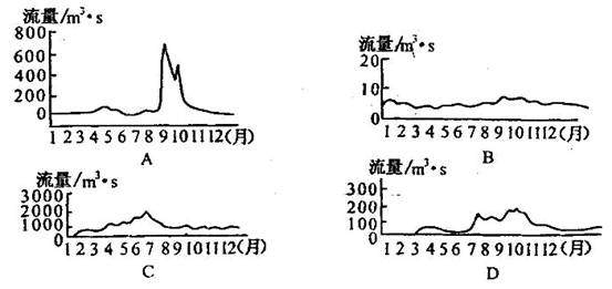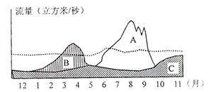 12.读我国东北某河流流量变化图,ABC分别表示河流的三种补给形式,回答