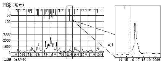 7.下图为我国某地某年河流实测流量和降水量逐月分布图,读图回答