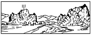 (2)乙处地貌类型为 ,简述该地貌的形成过程。