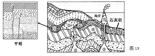 材料一:图19为地中海沿岸地质剖面图,甲图是图19岩层局部放大图。