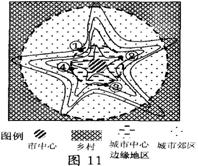 (江苏省如皋江安中学2010届高三10月国庆复习检测(二))图11中实线表示从市中心到城市各方向的等时线,虚线表示距市中心的等距离线。完成10-11题。