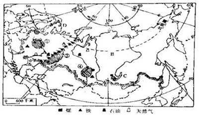 (图中①、②、③、④分别表示莫斯科工业区、圣比得堡工业区、乌拉尔工业区、新西伯利亚工业区)