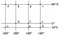 (千米),用了8个小时。而在60°N上飞行,飞了180°,路程只有赤道上的一半,相当于走