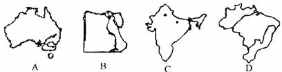 13.读下列四国轮廓图,按下表中的内容将代号填入国家的适当空格里。