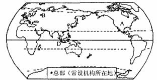 (1)根据各区域经济集团总部所在地位置,写出每个区域经济集团的名称: