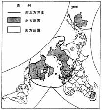 (2)图中南方与北方的界线大致是 。中国处在 范围内, 、 、 等国家空间位置上处于南半球,而经济上却属于 方国家。