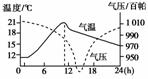 下图为某气象站测得的本站某日气温或气压的变化,据此完成11-13题。