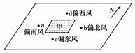 (2010年泰安质检)图中a、b、c、d四点为甲地气旋过境时的风向。读图,完成14-15题。