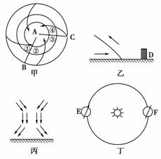 (2)乙图为________(锋面),它活动最为频繁时,会使我国北方表现为________(灾害性天气);此时地球位于丁图中________点(字母)附近,开普敦所处的季节是________;受________气压带控制,印度盛行________风。(12分)