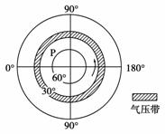 [解析] 图例所示的气压带为北半球副热带高气压带,图中P风带为北半球西风带。