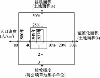 7.对该县1949~1980年土地耕垦、人口密度、放牧强度和荒漠化面积发展变化的分析,正确的是 ( )