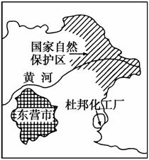 从山东省东营市中心向东南13公里,就可到达一片海边的盐碱地。2008年底,这片荒芜的土地上将诞生出一个世界级的化工厂--杜邦化工厂,它距国家级自然保护区黄河三角洲湿地25公里。读下图,完成14~15题。