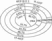 (2010年广州模拟)读1964~2000年中国各年龄段人口占总人口比重变化图,回答5~6题。