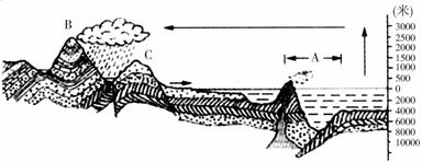 (2009年上海卷)板块构造学说是20世纪最重要的科学成果之一。右图为某种类型的板块边界示意图。据此回答8~10题。
