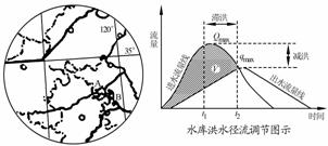 19.读我国某区域图及某水库洪水径流调节示意图,回答下列问题。(14分)