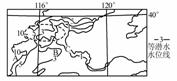 (2)图甲中,影响潜水水位分布差异与该地区 地理要素变化一致,虚线椭圆表示的区域范围内地下水的总体流动方向是 。(2分)