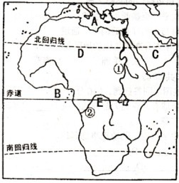 (2)E处是世界三大________气候区之一;非洲面积最大的气候类型是________________。