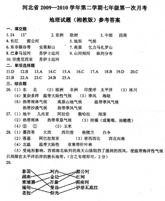 29、将下列城市与所在的国家及邻近大河用直线连起来。(9分)