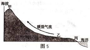 A.甲处地处迎风坡,降水多;丙处沿海降水多