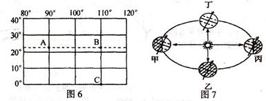 (2)A点的纬度是____________________,一天中,A、B两点先看到太阳的是__________。