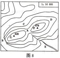 22.读图8“某地等高线地形图”,回答下列问题。(共8分)