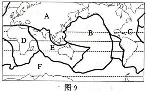 23.读“六大板块示意图”(图9),回答下列问题。(共8分)