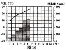(1)在网格图(图10)中,仿照1月至6月的气温曲线与降水柱状图,绘制7-12月的气