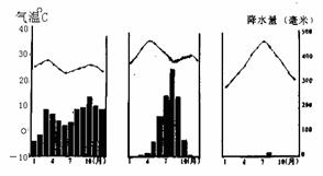 (1) A为 气候类型,对应的气温曲线图与降水柱状图是 。