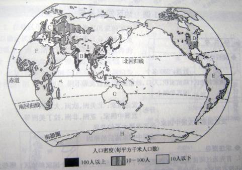 (1)图中A-I字母所示地区中,人口稠密的有_________,人口稀疏的有________(填字母)。