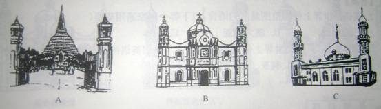 17.下图中的三座建筑是几种宗教的标志性建筑物,完成下列要求。