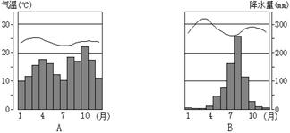 3.读“A、B两地气温曲线和降水量柱状图”,回答下列问题。