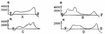 B12. 下图中能正确反映美国中部自西向东地势起伏的剖面图是