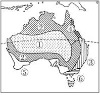 解析:此题重点考查对澳大利亚气候方面的掌握情况。南回归线穿过澳大利亚中部,本国绝大部分位于热带地区,热带气候占据主导地位。