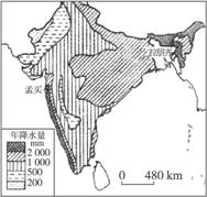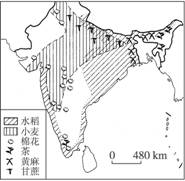7.(经典回放)读印度“年降水量分布图”和“农作物分布图”,完成下列问题。