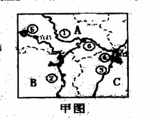 甲图是 江 游水系简图,请根据图中的代号对号填写: