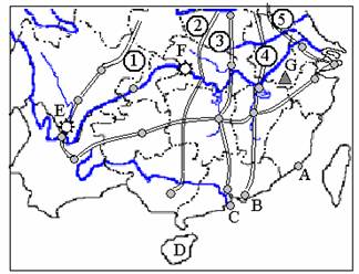 (4)“西气东输”主干线经过的F处(西北著名的灌溉农业区)是 ;其西