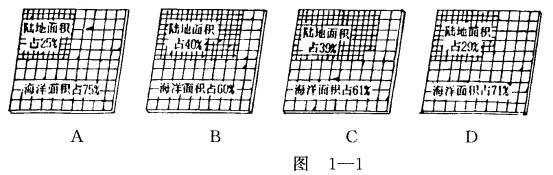 2.读下图,在下面关于全球陆地面积和海洋面积占全球表面积比例示意图中,正确的是 ( )