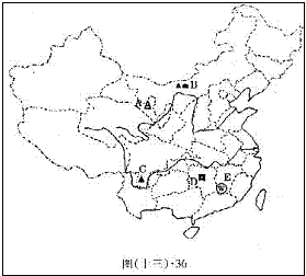 (3)C、D、E处于我国南方地区,该区_______资源的储量居全国之首。此处长江沿岸和海南岛还有____矿分布,这为本区工矿业发展提供了有利条件。