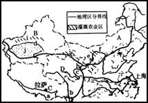 (2)中考资源网填出图中灌溉农业区的名称:e ,f ,g ,h ,i ;引黄河水灌溉的农业区是 (填字母)中考资源网,利用高山冰雪融水灌溉的农业区是 (填字母)中考资源网