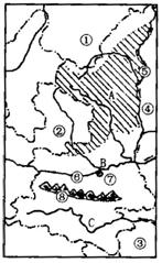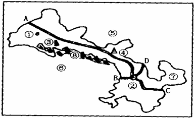 (2)城市②是__________,四条汇合于该市的铁路线分别是:A__________,B__________,C________,D___________。