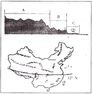 1.读“沿32°N线中国地势剖面图”,回答下列问题(每空1分,共10分)