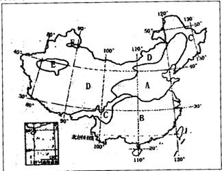 (1)填出图中字母代表的省和自治区的名称: