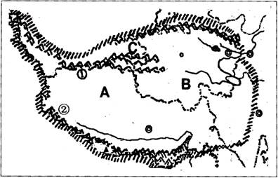 (1)写出图中字母所代表的地理区域名称:A ____________;B ____________;