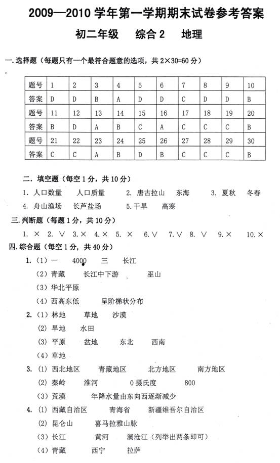 3.读“中国四大地理分区图”,完成下列问题。(每空1分。共10分)